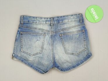 ZARA – jeansowe szorty damskie - Model: denimowe szorty z wysokim stanem - Kolor: jasny, sprany błękit z efektem „washed” - Fason: luźniejsza nogawka, mocno postrzępione krawędzie i przetarcia typ...