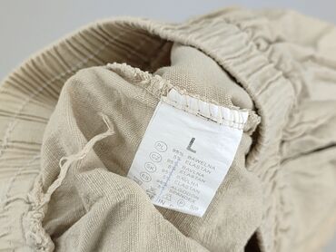 Damskie szorty lniane w kolorze jasnego beżu - Rozmiar z metki: L/XL - Skład: 95% len, 5% elastan – przewiewne, lekko elastyczne - Krój: wysoki stan, szerokie nogawki - Pas: szeroka, elastyczna ta...