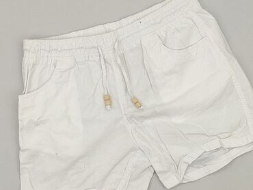 Białe szorty damskie z bawełny - Materiał: 100% bawełna (lekka, przewiewna tkanina) - Rozmiar z metki: S - Krój: luźny, z krótszymi rozcięciami po bokach dla swobody ruchu - Pas: szeroka, elastycz...