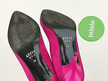 - Obcas: smukły, ok. 7–8 cm, lakierowany na wysoki połysk w tonacji różowej