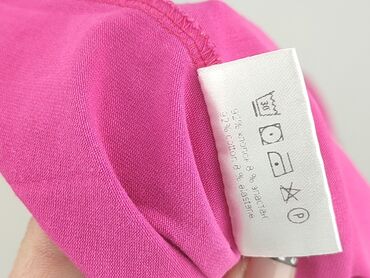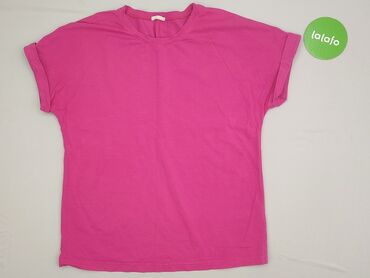 Różowa koszulka damska Latynka - Fason: klasyczny T-shirt z krótkim rękawem - Dekolt: w kształcie litery V - Kolor: intensywny róż - Rozmiar z metki: 48 - Skład materiału: 95% bawełna, 5% elastan ...Stan: