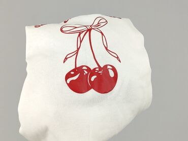 T-shirt damski FB Sister, rozmiar M (metka). Krój krótki/crop top, z krótkim rękawem i okrągłym dekoltem. Kolor biały z czerwonym nadrukiem na przodzie: napis “Sweet Cherry Kisses” oraz dwie wiśnie przewiązane kokardką. Miękki, elastyczny materiał dzianinowy, idealny do codziennych stylizacji, do jeansów i spódniczek. Świetny, dziewczęcy akcent w stylu Y2K.