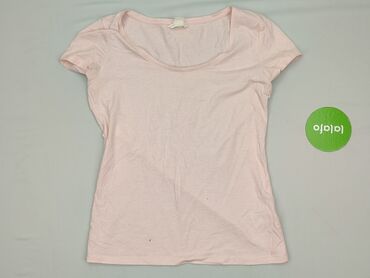 T-shirt damski H&M - Kolor: pudrowy róż (jasny, neutralny odcień) - Krój: klasyczny t-shirt z krótkim rękawem, lekko zaokrąglony dół - Dekolt: okrągły - Rozmiar z metki: M (EUR/US/CA/MX M, CN 170/...
