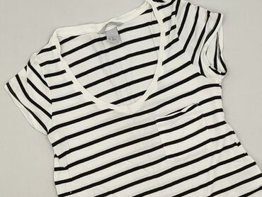 T-shirt H&M w paski - Marka: H&M - Model: klasyczny t-shirt z krótkim rękawem - Wzór: poziome granatowe paski na białym tle (breton) - Rozmiar z metki: S (EU S / US S / CA P / MX CH / CN 165/88A) ...