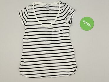 T-shirt damski H&M - Model: klasyczna koszulka w paski - Kolor: biały w granatowe, poziome paski - Krój: krótki rękaw, dekolt w serek (V-neck) - Rozmiar: S (EUR S / US S / CA S – zgodnie z metką) ...