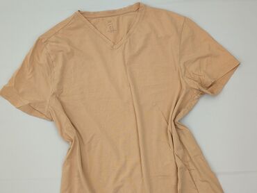 Beżowy T‑shirt damski Harry Mood - Krój: klasyczny, lekko skrócony, z krótkim rękawem - Dekolt: okrągły - Rozmiar z metki: XL - Kolor: jednolity beż - Materiał: miękka dzianina bawełniana z domies...