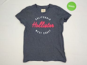 T-shirt damski Hollister - Marka: Hollister California - Rozmiar z metki: XS - Krój: dopasowany, z krótkim rękawem - Kolor: szary melanż z granatowymi ściągaczami przy dekolcie i rękawach - Wzór: ...