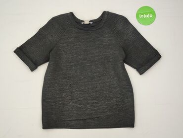Krótki rękawCzarna bluzka marki H&M w rozmiarze 4. Bluzka jest używana, ale w idealnym stanie. Wykonana z poliestru, ma krótkie rękawy z podwiniętymi mankietami i okrągły dekolt. Doskonała na co dzień.