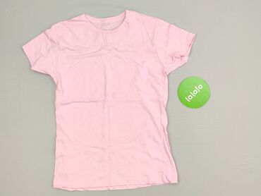 Różowy T-shirt damski z krótkim rękawem - Rozmiar: L (na metce “WOMEN L”) - Materiał: 100% bawełna – miękka, przewiewna dzianina - Kolor: jasny róż - Krój: klasyczny, okrągły dekolt - Detale: ozdo...