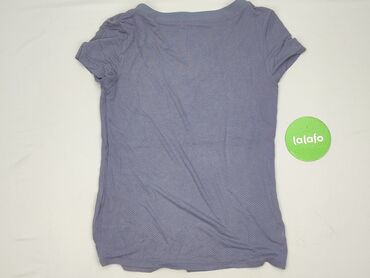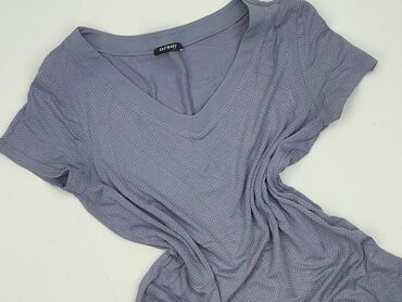 Bluzka damska Orsay - Kolor: granatowy - Wzór: drobne białe/niebieskie motywy roślinne i kropki - Krój: dopasowany T‑shirt z krótkim rękawem - Dekolt: w kształcie litery V - Materiał: miękka dzian...