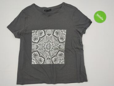 T-shirt damski MOHITO Collection, rozmiar XS. - Kolor: jasnoszary melanż - Krój: klasyczny, z krótkim rękawem i okrągłym dekoltem - Przód zdobiony aplikacją z perełkowymi koralikami układającymi si...