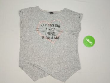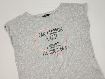T-shirt damski MOHITO Collection, rozmiar XS. - Kolor: jasnoszary melanż - Krój: klasyczny, z krótkim rękawem i okrągłym dekoltem - Przód zdobiony aplikacją z perełkowymi koralikami układającymi si...