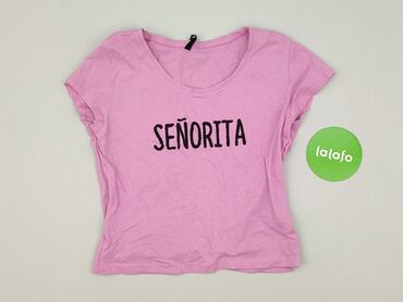 Różowy T‑shirt damski Sinsay BASIC - Rozmiar: XL (z metki) - Kolor: jasny róż (pastelowy) - Fason: krótki T‑shirt z krótkim rękawem, okrągły dekolt - Dół wiązany na supeł z przodu (możliwość regul...