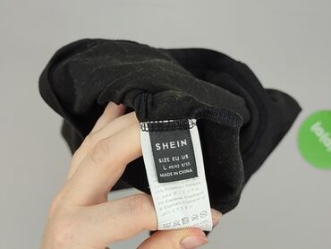 Czarny top/t-shirt SHEIN - Marka: SHEIN - Rozmiar z metki: L (EU 40/42, US 8/10) - Fason: krótki t-shirt z krótkim rękawem, klasyczny okrągły dekolt, lekko taliowany - Kolor: czarny - Materiał: 95...