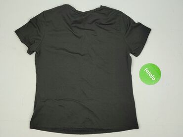 Czarna koszulka damska SHEIN - Rozmiar: L (EU 40/42, US 8/10 – widoczne na metce) - Materiał: 65% poliester, 30% bawełna, 5% spandex – miękka, lekko elastyczna dzianina - Krój: luźny, z krótkim rę...