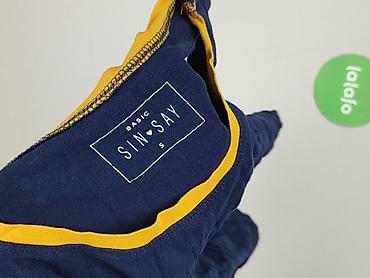 T-shirt damski Sinsay - Rozmiar: M (z metki) - Fason: klasyczny, lekko boxy; okrągły dekolt - Rękawy: krótkie, z podwójnymi białymi pasami w stylu sportowym - Kolor: granatowy - Materiał: 100% baw...