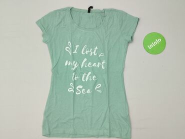 T-shirt damski Sinsay - Kolor: miętowy/pastelowa zieleń - Rozmiar: XS (z metki) - Krój: klasyczny, z krótkim rękawem - Dekolt: okrągły - Materiał: cienka, miękka dzianina bawełniana (na ujęciach w...