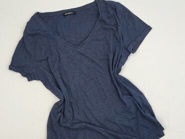 Damska koszulka z krótkim rękawem marki Terranova w rozmiarze M. Koszulka w odcieniu beżowym, wykonana z materiału będącego mieszanką poliestru i wiskozy. Charakteryzuje się okrągłym dekoltem. Faso...