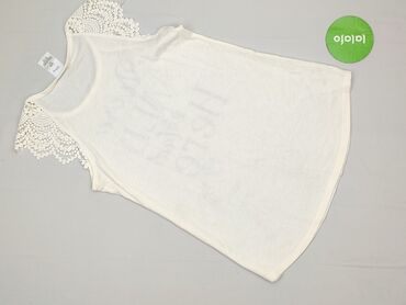Bluzka damska bez rękawów, biała/ecru z koronką. - Lekka, przewiewna tkanina; z przodu i na ramionach wstawki z ażurowej koronki - Kołnierzyk koszulowy, dekolt w kształcie litery V - Delikatnie ma...