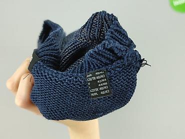 Sweter damski, granatowy, dzianinowy - Krój: klasyczny, z okrągłym dekoltem - Rękawy: długie, zakończone ściągaczem - Splot: mieszany – przód z dekoracyjnymi warkoczami i panelami o różnej fakturz...