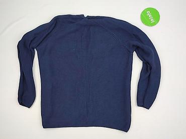Sweter damski, granatowy, dzianinowy - Krój: klasyczny, z okrągłym dekoltem - Rękawy: długie, zakończone ściągaczem - Splot: mieszany – przód z dekoracyjnymi warkoczami i panelami o różnej fakturz...