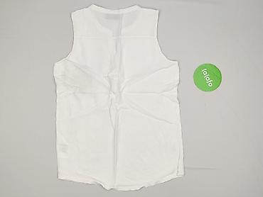 Biała damska bluzka bez rękawów - Krój: luźny, bez rękawów - Dekolt: w kształcie litery V (przód i tył z lekkim przeszyciem modelującym) - Długość: do bioder, lekko zaokrąglony dół - Rozmiar: one ...