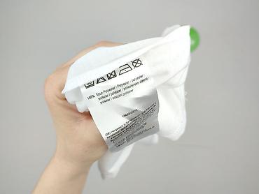 - Wskazówki pielęgnacyjne z metki: prać w 30°C, nie wybielać, prasować w niskiej temp., nie suszyć w suszarce bębnowej, nie czyścić chemicznie
