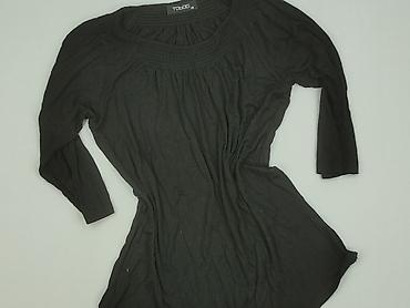 Bluzka damska TOGETHER, rozmiar z metki 38/40. - Kolor: czarny - Fason: luźniejszy, z długim rękawem - Dekolt: półgolf/henley zapinany na rząd ozdobnych guzików - Detale: złote dekoracyjne taśmy p...