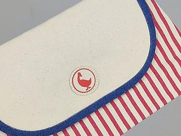- Kolorystyka: kremowa klapa z granatową lamówką; dół i tył w czerwono‑kremowe paski