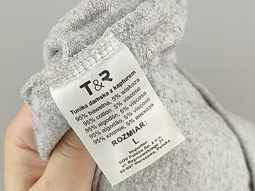 TOM&ROSE Wellness – tunika damska z kapturem - Model: T&R (na metce „Tunika damska z kapturem”) - Rozmiar: L - Fason: tunika z długim rękawem, kaptur ze ściągaczem na czarnych taśmach z napisem, o...