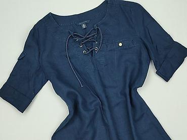 Niebieska bluzka/tunika damska RESERVED - Model: luźna tunika z odcięciem i marszczeniem w talii - Krój: krótki rękaw, okrągły dekolt, rozszerzany dół - Materiał: 100% bawełna (metka na zdjęciu) -...