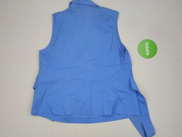 Bez rękawówNiebieski top ciążowy z dekoltem w kształcie litery V i kołnierzykiem. Model bez rękawów, z wiązaniem w talii, co pozwala na dopasowanie do zmieniającej się sylwetki. Idealny do noszenia na co dzień, zapewniając komfort i swobodę ruchów.