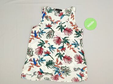Top damski Sinsay – na ramiączkach, z tropikalnym nadrukiem - Marka: Sinsay - Rozmiar z metki: S - Krój: prosty, lekko skrócony; dekolt halter z cienkimi ramiączkami - Materiał: miękka, elastyczna...