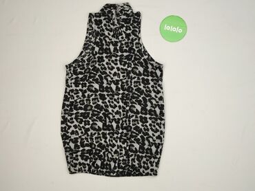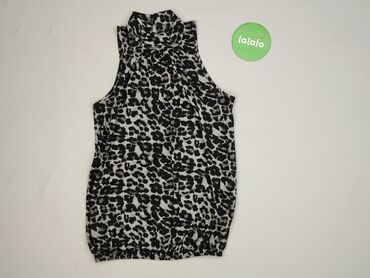 Bluzka bez rękawów z kołnierzykiem, zapięcie na guziki z przodu. Wzór: panterka/animal print w odcieniach czerni, szarości i bieli z drobnymi złotymi akcentami. Tkanina lekka, lejąca. - Rozmiar: S...