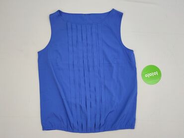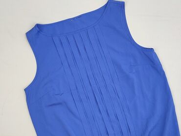 Bluzka damska bez rękawów - Kolor: jasny błękit z ciemnogranatową lamówką przy dekolcie i pachach - Rozmiar: L (EU L) - Fason: luźna, lekko marszczona z przodu, dekolt w kształcie litery V z małym...