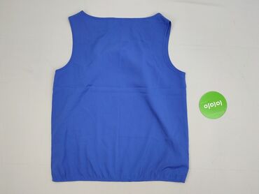 Bluzka damska bez rękawów - Kolor: jasny błękit z ciemnogranatową lamówką przy dekolcie i pachach - Rozmiar: L (EU L) - Fason: luźna, lekko marszczona z przodu, dekolt w kształcie litery V z małym...Stan: