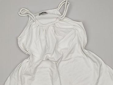 Biały ażurowy top damski na ramiączkach - Krój: bez rękawów, głęboki dekolt V z przodu i z tyłu - Wzór/wykończenie: szydełkowa, ażurowa dzianina z geometrycznym motywem rombów; elastyczny ściągacz...