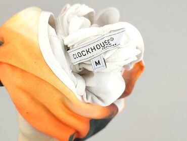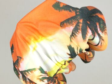 Kolorystyka: biały + pomarańczowo-żółty gradient z czarnymi palmami. Marka: Clockhouse. Rozmiar na metce: M.