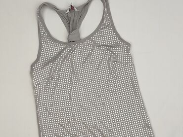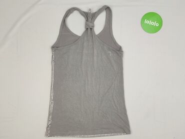 Szara damska koszulka bez rękawów (tank top) CLOCKHOUSE, rozmiar M. - Krój sportowy z wyciętymi plecami (racerback) - Melanżowa dzianina w odcieniu jasnej szarości, miękka i elastyczna - Przód z...