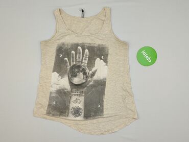 Top damski CROPP bez rękawów - Kolor: melanżowy szary, efekt sprania - Krój: luźny, lekko wydłużony tył, rozcięcia po bokach - Dekolt: okrągły - Nadruk z przodu: fazy księżyca + napis „SHOOT FOR T...Top damski Cropp, rozmiar M.