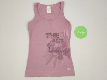 Top damski bez rękawów - Krój: prosty, lekko pudełkowy, z opadającym ramieniem (cap sleeves) - Dekolt: okrągły - Długość: do bioder - Materiał: elastyczna dzianina o fakturze prążkowanej; połyskuj...