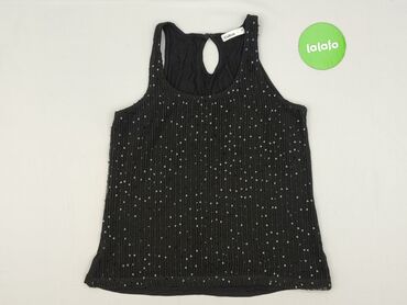 Czarny top damski Cubus, rozmiar M. - Krój: bez rękawów, okrągły dekolt - Tył z ozdobnym łezkowym wycięciem zapinanym na guzik - Przód pokryty ażurową siateczką z wszytymi drobnymi cekinami, które...
