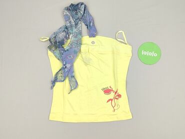 Top damski na ramiączkach, wzór tie‑dye w odcieniach żółci i bieli. - Krój: luźny, z dekoltem w kształcie litery V z przodu i z tyłu - Ramiączka: cienkie - Długość: do bioder (zaokrąglony dół) - M...