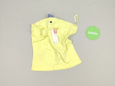 Top damski na ramiączkach, żółty. - Fason: dopasowany top z elastycznej, marszczonej tkaniny (efekt „crinkle/szmizjerka”) - Dekolt: z przodu i z tyłu ozdobne kółko łączące szerokie ramiączka -...