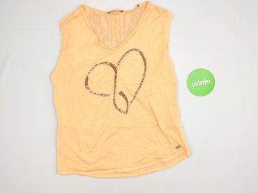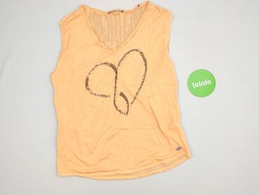 Koszulka damska bez rękawów EDC by Esprit - Rozmiar: XL (metka widoczna na zdjęciu) - Fason: luźny top/singlet, okrągły dekolt, lekko marszczony dół - Kolor: pastelowy żółty - Nadruk z przodu: wie...