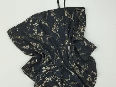 Top damski na ramiączkach - Fason: dopasowany, z szerokimi ramiączkami i kwadratowym dekoltem - Wzór: drobne kwiaty (różyczki) na czarnym tle - Długość: do bioder, z krótkimi rozporkami po bokach ...