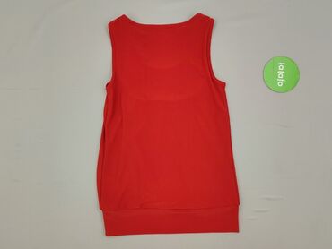 Czerwona bluzka damska bez rękawów - Fason: prosty, lekko luźny - Dekolt: okrągły - Rękawy: krótkie skrzydełka/volanty z falbanką po bokach przodu i z tyłu - Tkanina: lekka, miękka, lekko elastycz...Stan: