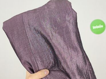 Bluzka damska w kolorze śliwkowym/fioletowym. - Krój: luźny, z krótkim rękawem - Dekolt: półokrągły - Rozmiar z metki: 50 - Materiał: gładka, połyskująca tkanina; przód z ozdobnym panelem o tłoczo...