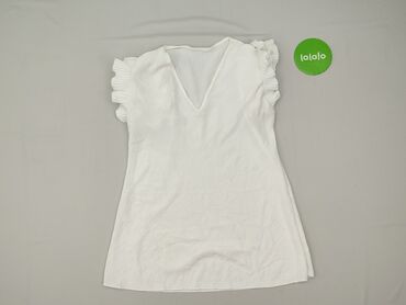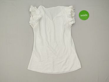 Biała damska bluzka Carry Yng Ladies Collection - Rozmiar: S - Krój: prosty, lekko luźny - Rękaw: krótki - Dekolt: okrągły - Detal: delikatna falbanka biegnąca przez przód - Materiał: 100% wiskoza...Stan: