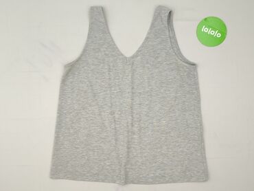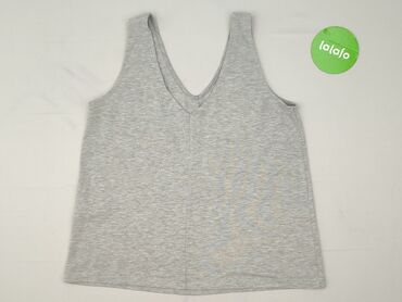 Bluzka damska bez rękawów, rozmiar M. Kolor: grafitowy melanż z jasnymi przetarciami. Fason: lekko luźny, z zaokrąglonym dołem i krótkimi rękawkami typu cap. Okrągły dekolt. Detale: na ramion...